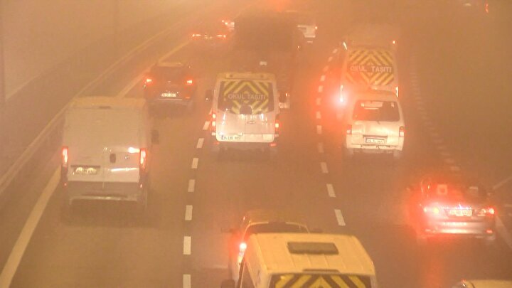 Anadolu Yakası’nda E5 kara yolu üzerinde araçlar dörtlülerini yakarak ilerlerken bazı araçların sis nedeniyle görüş mesafesi düştüğü için yol kenarında bekleme yaptığı görüldü.