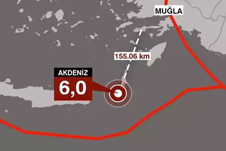 Afet ve Acil Durum Yönetimi Başkanlığı (AFAD) verilerine göre, Akdeniz'de saat 01.51'de 6.0 büyüklüğünde bir deprem meydana geldi.