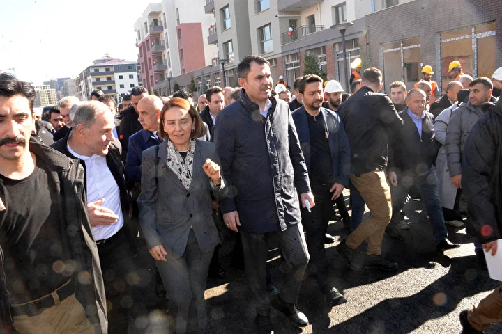 Çevre Şehircilik ve İklim Değişikliği Bakanı Murat Kurum bir dizi ziyaretlerde bulunmak üzere geldiği Kahramanmaraş'ta Doğukent Mahallesi’nde yapımı devam eden ve tamamlanan konutlarda incelemelerde bulundu.