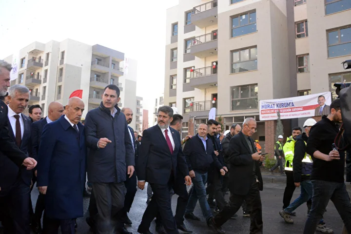 Depremin ilk anında acıyı da umudu da depremzedelerle birlikte yaşadıklarını, 86 milyonun deprem bölgesi için tek yürek olduğunu kaydeden Kurum, “86 milyon kardeşimizle birlikte deprem bölgesi için gece gündüz mücadele ediyoruz. Bugün depremden etkilenen 11 ilimizde 174 ayrı alanda, 3 bin 481 şantiyede 200 bin emekçi, işçi kardeşimle, mimar, mühendis arkadaşımla birlikte 7 gün 24 saat şekliyle kesintisiz bir şekilde bu mücadeleyi sürdürüyoruz. Hamdolsun deprem felaketinin ilk dakikalarından itibaren ortaya koyduğumuz kararlılık, gayret ve fedakarlık sayesinde bugün 11 ilimizin tamamında artık son tuğlalar koyuluyor ve artık son çiviler çakılıyor. Burada her geldiğimizde bakanlarımızla, milletvekillerimizle, belediye başkanlarımızla, valimizle birlikte milletimizi dinliyor, milletimizin ihtiyaçlarını, milletimizin sıkıntılarını gidermek için de canla başla mücadele ediyoruz. Söz verdiğimiz gibi 453 bin konut ve iş yerinin artık yüzde 80’inin tamamlamış olduk. Allah'ın izniyle kasım ayı bitti, artık aralık ayında da söz verdiğimiz gibi 453 bin konuttan daha da fazlasını hak sahibi vatandaşlarımıza teslim ediyor olacağız. 453 bin hak sahibi vatandaşımızla birlikte hem yerinde dönüşüm projelerimiz hem kentsel dönüşüm projelerimizle birlikte milletimizin ihtiyaçlarını gidermeye çalışıyor ve bu ihtiyaçları gidermek için de şehirleri yeniden ayağa kaldırmak için de bu mücadeleyi sürdürüyoruz.