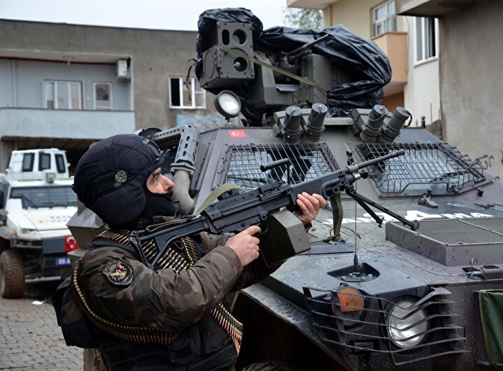 Silopi'de uygulanan sokağa çıkma yasağı kapsamında hendeklerin kapatılması, barikatların kaldırılması, yollara tuzaklanan el yapımı patlayıcıların etkisiz hale getirilmesi ve ilçenin teröristlerden temizlenmesi amacıyla başlatılan Şehit Polis Muhammet Onur operasyonu sürüyor.