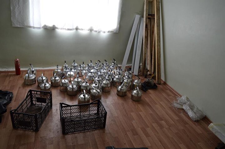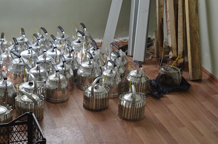 Hakkari'nin Yüksekova ilçesinde terör örgütü PKK'ya yönelik operasyonda güvenlik güçlerinin dikkati büyük bir faciayı önledi.Orman Mahallesi'nde yoğunlaşan operasyonda teröristlerin bomba imalathanesi olarak kullandığı belirlenen evde arama yapan güvenlik güçleri, el yapımı patlayıcı yerleştirilmiş 55 çaydanlık, 10 kilogram A-4 patlayıcı, 2 ton amonyum nitrat ile çok sayıda havan mermisi ve mühimmat ele geçirdi.