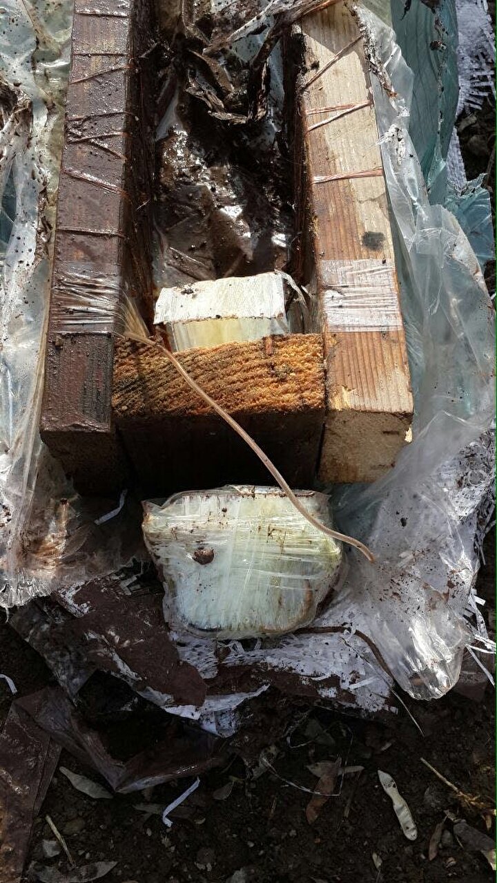 Gergiden kurtulma tipi el yapımı patlayıcı düzeneği, çok sayıda havan mermisi, 2 savunma tipi el bombası, 2 tuzaklanmış yangın tüpü, 12 el bombası fünyesi, zırhlı araçlar için 10 basma düzeneği, 8 boş ve 3 dolu mutfak tüpü, 150 elektrikli kapsül, 50 adi kapsül, 500 metre saniyeli fitil