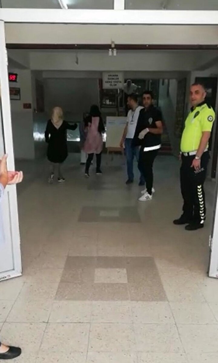 Yanlış sınav yerine gelen Sevilgen'i görevli polis ekipleri polis aracıyla sınava gireceği Mehmet Akif Ersoy Ortaokuluna götürdü.