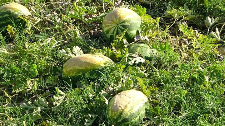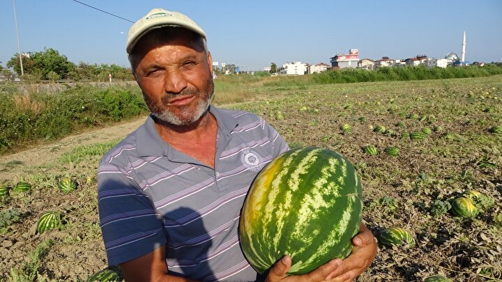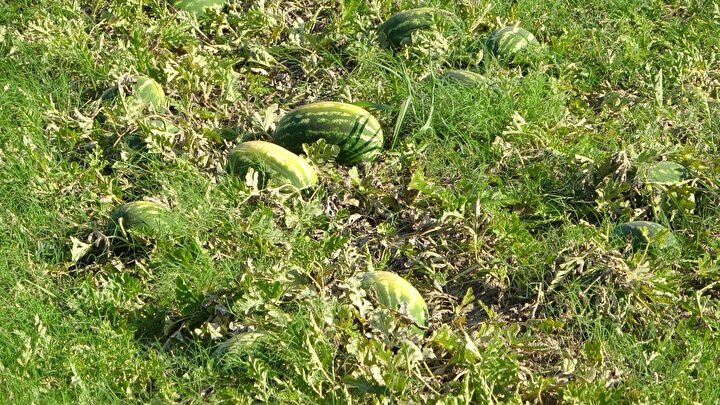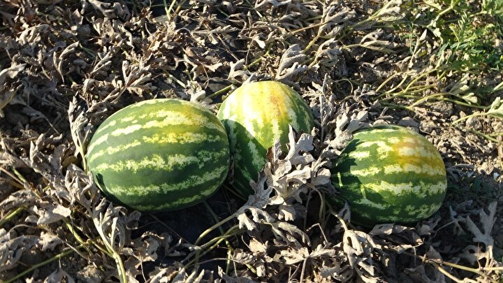Aksoy, tarlada 5 ile 20 kilo arasında değişen karpuzun tamamına yakınının aşırı sıcak ve poyrazdan dolayı yandığını söyledi.