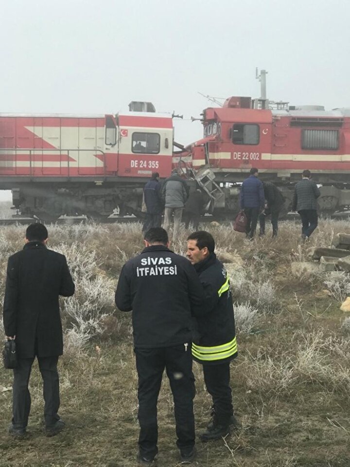 Sivas'ın Ulaş ilçesi Bostankaya Tren İstasyonu yakınında, yük treni ile yolcu treninin, bölgede etkili olan sis nedeniyle çarpıştığı öne sürüldü.