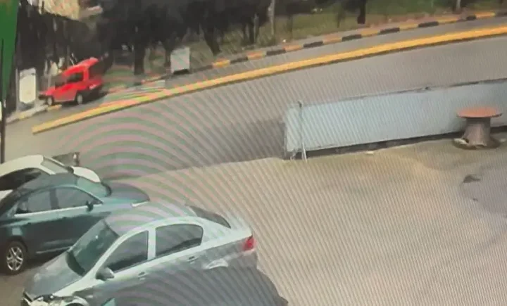 Kayıtlarda, park halindeki aracın aniden hareket ederek durağa çarpması yer alıyor.