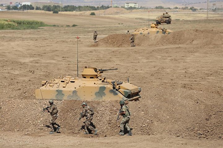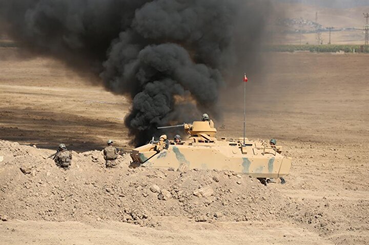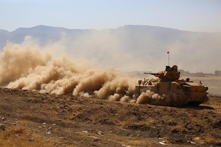 Türk Silahlı Kuvvetlerince (TSK), Şırnak'ın Silopi ilçesindeki Habur Sınır Kapısı yakınlarında 18 Eylül'de başlatılan tatbikat sürüyor. Dün birliklerin bakım ve temizliğinin ardından bugün zırhlı araçların manevra yaptığı alanda, tatbikat gereği bir mekanize piyade ve bir zırhlı tank bölüğü Irak askerleri ile taktik intikali gerçekleştirdi.