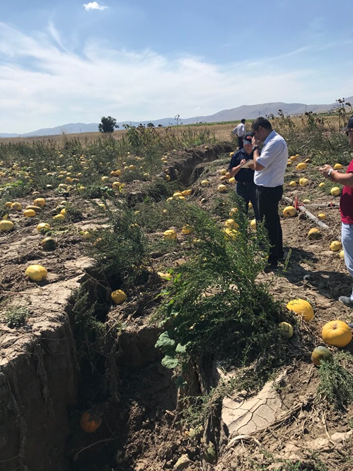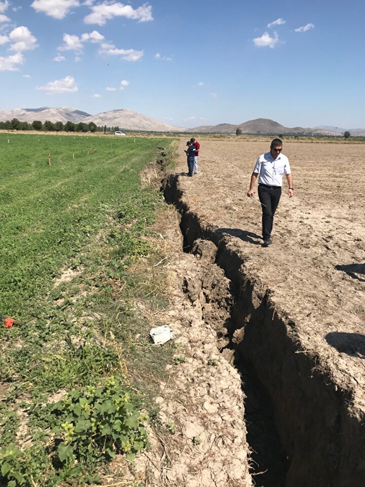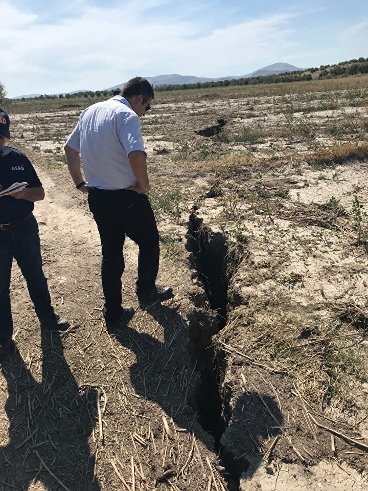 İlçeye bağlı Doğanlı köyünde tarlalarında derin yarıkların oluştuğunu görünce endişelenen köylüler, durumu Afet ve Acil Durum Yönetimi Başkanlığı (AFAD) İl Müdürlüğüne bildirdi.