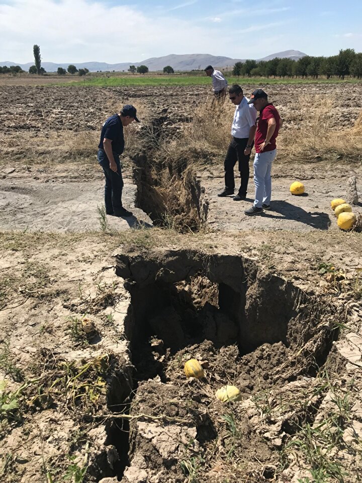 AFAD yetkilileri, kuraklık ve bilinçsiz su kullanımı nedeniyle yeraltı sularının zamanla azalmasına bağlı olarak arazide deformasyonların oluştuğunu bildirdi.