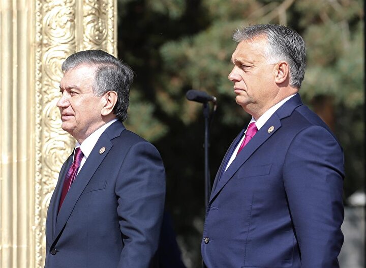 Özbekistan Cumhurbaşkanı Şavkat Mirziyoyev (solda ) ve Macaristan Başbakanı Viktor Orban (sağda)