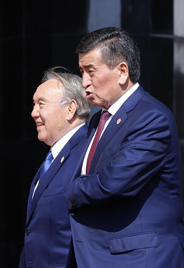 Kırgızistan Cumhurbaşkanı Sooronbay Ceenbekov (sağda) ve Kazakistan Devlet Başkanı Nursultan Nazarbayev (solda)