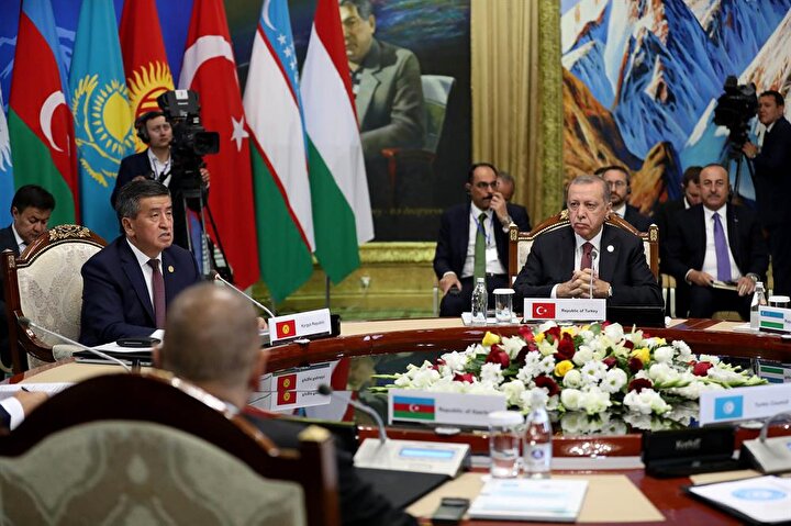 Türkiye Cumhurbaşkanı Recep Tayyip Erdoğan, Ruh Ordo Kültür Merkezi'nde gerçekleşen "Türk Konseyi 6. Devlet Başkanları Zirvesi" ne katıldı. Cumhurbaşkanı Erdoğan konuşmasına, 31 Ağustos'ta kutlanan Kırgız Cumhuriyeti'nin bağımsızlığının 27'nci yıl dönümü sebebiyle tebriklerini ileterek başladı.