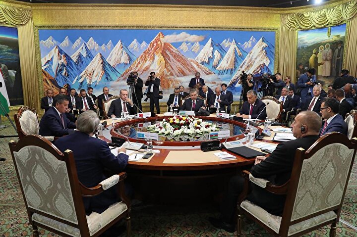 Başkan Erdoğan'ın yanı sıra Azerbaycan Cumhurbaşkanı İlham Aliyev, Kazakistan Cumhurbaşkanı Nursultan Nazarbayev, Kırgızistan Cumhurbaşkanı Sooronbay Ceenbekov, Özbekistan Cumhurbaşkanı Şevket Mirziyovev ve Macaristan Başbakanı Viktor Orban'ın açılış konuşması sonrasında zirve basına kapalı devam ediyor.