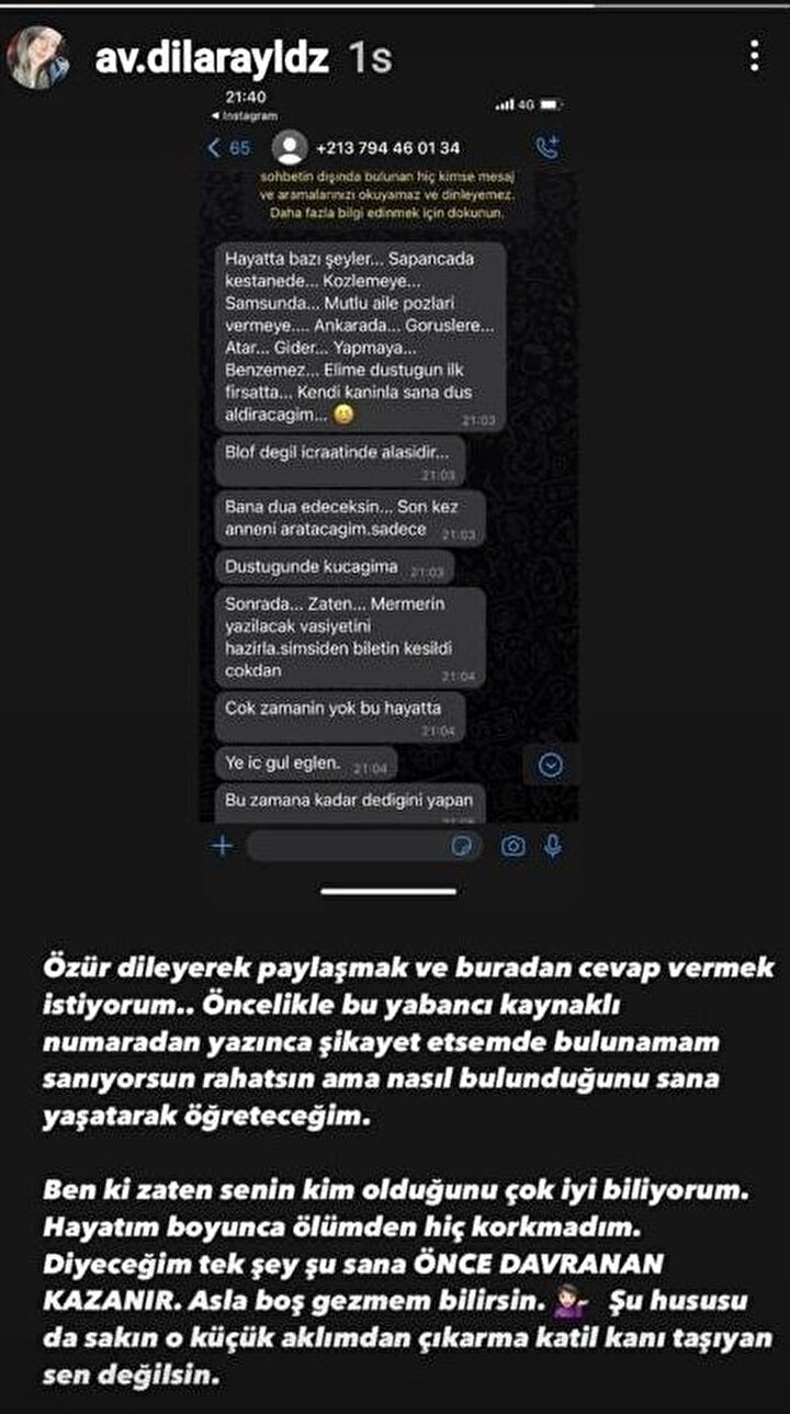 Yaşanan olaydan önce Oktay Dönmez'in, Dilara Yıldız'a farklı bir numaradan bazı mesajlar attığı iddia edildi. Dönmez'in mesajlarında Yıldız'a ' Hayatta bazı seyler, Sapanca'da kestane közlemeye, Samsun'da mutlu aile pozları vermeye, Ankara'da görüşlere, atar gider yapmaya benzemez. Elime düştüğün ilk fırsatta kendi kanınla sana duş aldıracağım. Blöf degil icraatinde alasıdır. Bana dua edeceksin. Son kez anneni aratacağım. Sadece düştüğünde kucağıma. Sonrada zaten mermerin yazılacak vasiyetini hazırla. Şimdiden biletin kesildi çoktan. Çok zamanın yok bu hayatta. Ye iç gül eğlen.' dediği öğrenildi. Kendisine atılan mesajları sosyal medya hesabında paylaşan Yıldız'ın ise, "Özür dileyerek paylaşmak ve buradan cevap vermek istiyorum.. Öncelikle bu yabancı kaynaklı numaradan yazınca şikayet etsem de bulunamam sanıyorsun, rahatsın ama nasıl bulunduğunu sana yaşatarak öğreteceğim" dediği görüldü.
