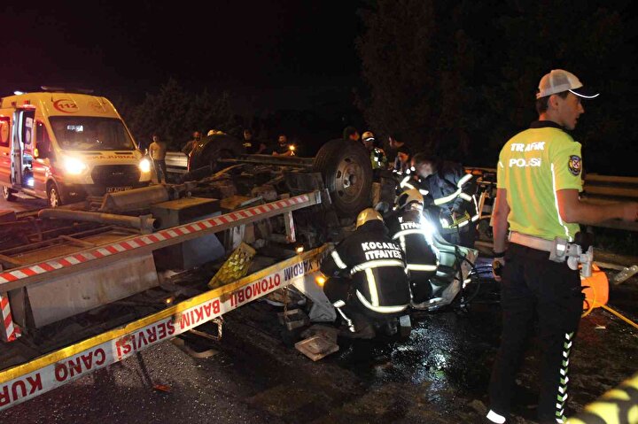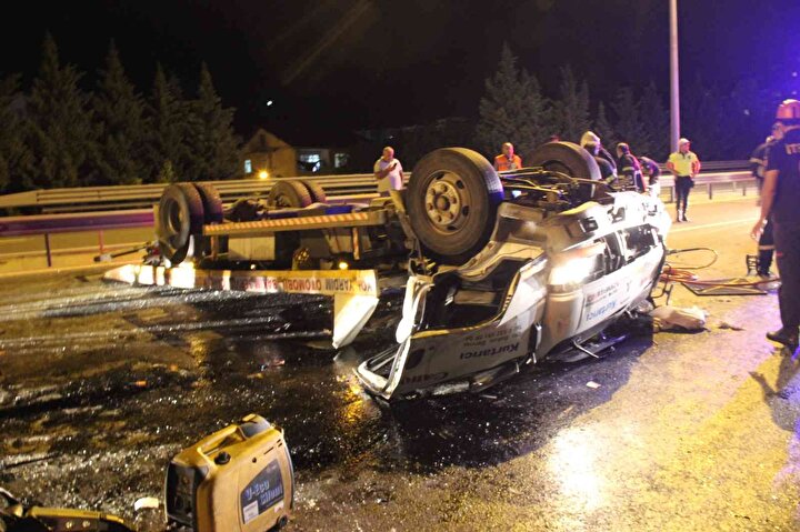 Sağ şeritte bulunan araçlara o sırada aynı istikamette seyir halinde olan Abdurrahman Ünsal idaresindeki Mitsubishi marka 41 FH 004 plakalı oto kurtarıcı çarptı.