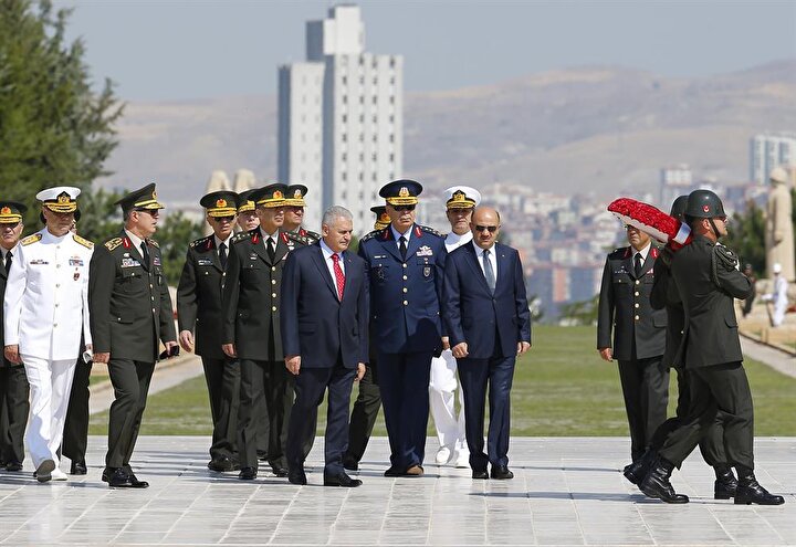 Yüksek Askeri Şura (YAŞ) üyeleri, Başbakan Binali Yıldırım başkanlığında Anıtkabir'i ziyaret etti.