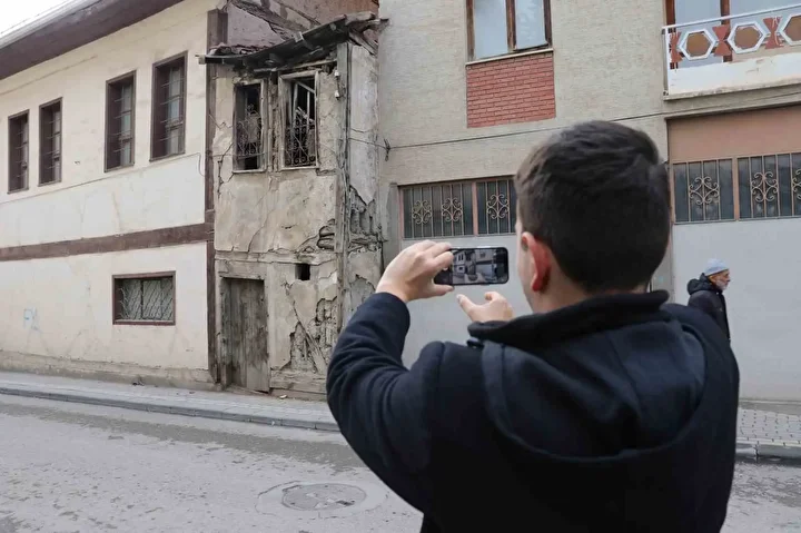 Yılların izlerini taşıyan ev, çevresindeki modern yapılara rağmen hâlâ varlığını korumaya çalışıyor.