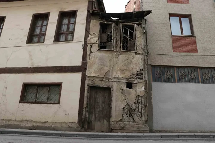 Sivas’ta bir konak ve binanın arasında sıkışıp kalan yaklaşık 2 metre enindeki metruk bina görüntüsüyle dikkat çekiyor.