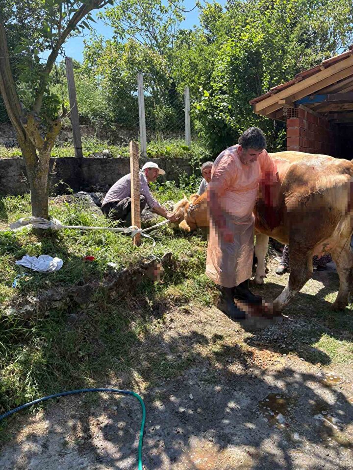 Ölü doğan buzağı gömülürken, ineğin sağlık durumunun iyi olduğu belirtildi.