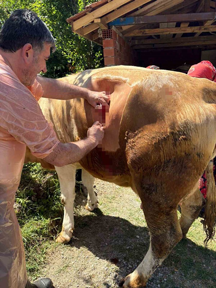 Bartın'a bağlı Karainler köyünde yaşayan Mustafa Yaman'a ait 2 yaşındaki Simental cinsi ineğin, bugün sabah saatlerinde doğumu başladı. Bir türlü doğumun gerçekleşmemesi üzerine hayvan sahipleri, veteriner Hekim Tolga Kandıralı'ya haber vererek yardım istedi. Normal olarak doğum yaptırmaya çalışan veteriner hekim Kandıralı, bir terslik olduğunu fark edince sezeryanla ameliyat edilmesi kararını verdi.