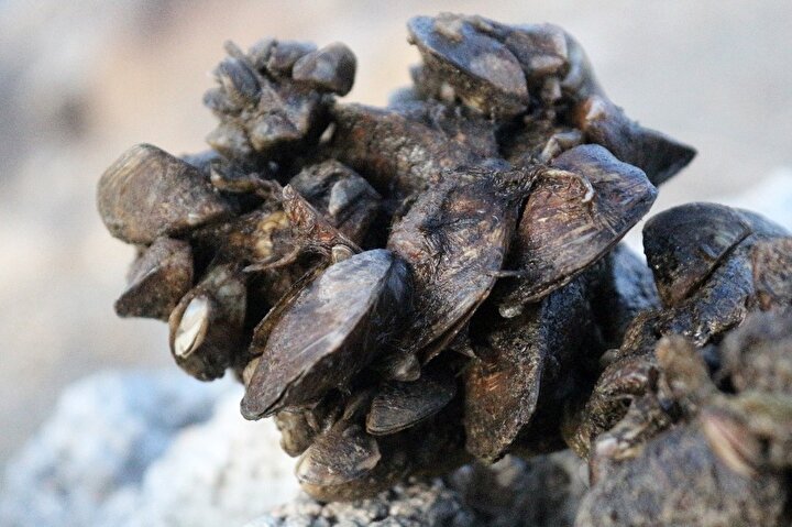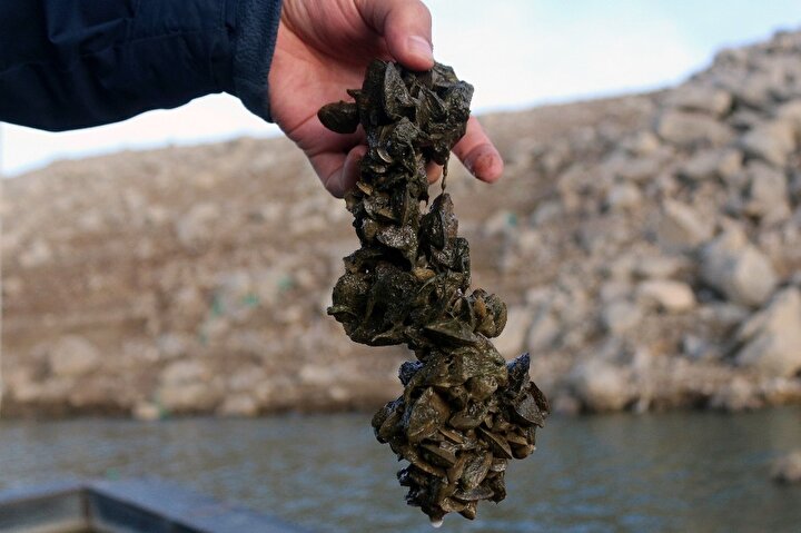 Dünyada ekonomik ve ekolojik olarak büyük zararlara yol açan zebra midyeler, Van Gölü Havzası'ndaki Sarımehmet Baraj Gölü'nü tamamen istila etti.