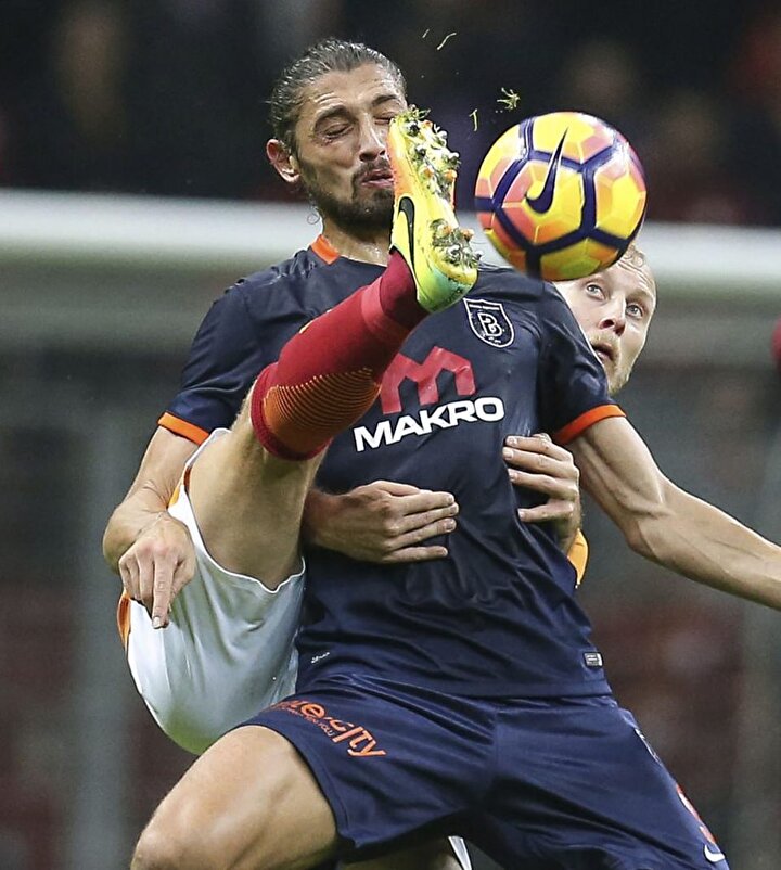 Mehmet Batdal ile Semih Kaya'nın mücadelesi - Spor Toto Süper Lig'de 10. haftanın açılış maçında Galatasaray ile Medipol Başakşehir, Türk Telekom Arena'da karşılaştı. Bir pozisyonda Galatasaraylı oyuncu Semih Kaya (26) ile Medipol Başakşehirli futbolcu Mehmet Batdal (9) mücadele etti. - Salih Zeki Fazlıoğlu