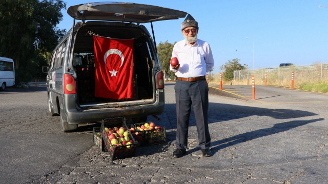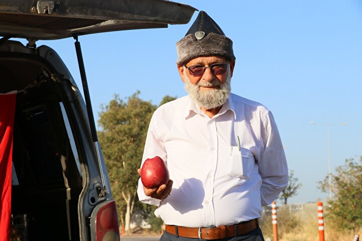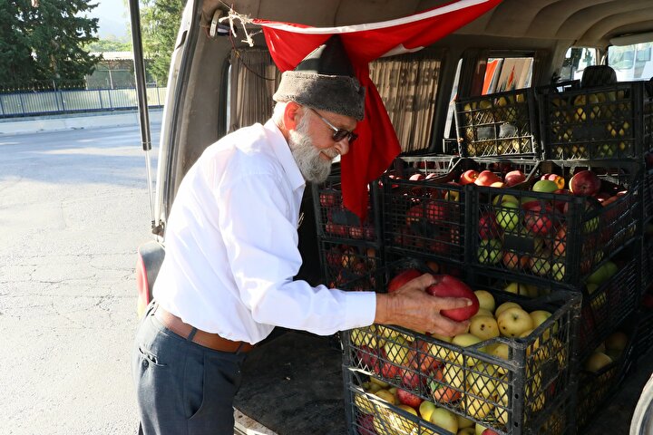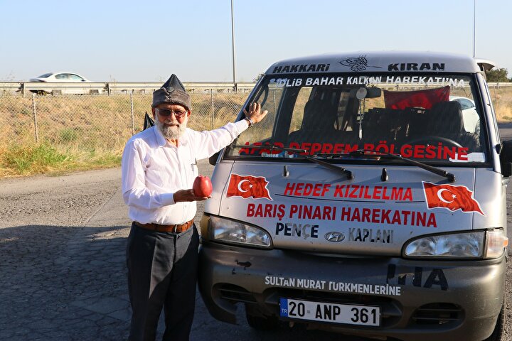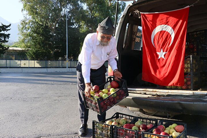 Yurt içi ve yurt dışında operasyonlara katılan askerlere elma götürmesi nedeniyle "Elmacı dede" olarak tanınan Muhammet Yılmaz, Türk bayrağıyla süslediği minibüsüyle Ege Ordusu Komutanlığı Tuğgeneral Hüdaverdi Ersoy Kışlası önüne geldi.
