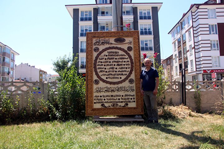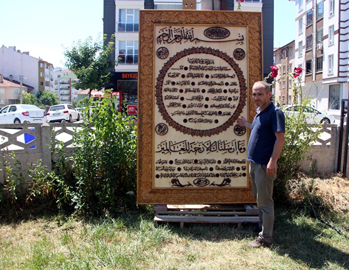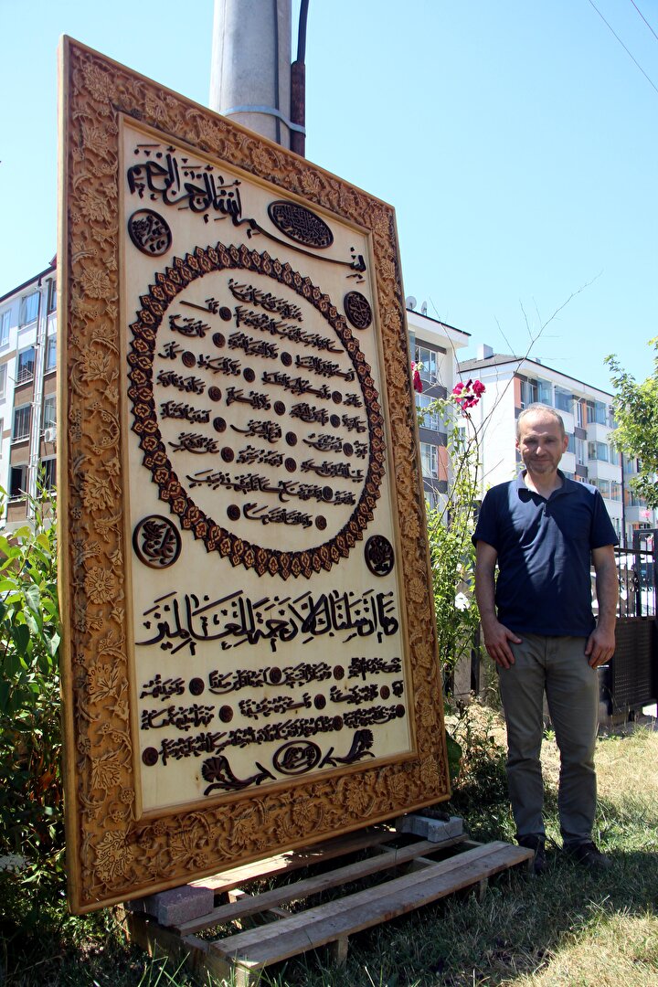 Bolu'da, İsmail Şentürk (49), el işçiliğiyle iki yılda bitirdiği 2,5 metre yüksekliğindeki Hilye-i Şerif'i gerekli izinleri alıp, Ayasofya Camii'ne hediye etmek istiyor. Eseri için 300 bin TL'lik teklifi geri çeviren Şentürk, “Bu eser Ayasofya'ya yakışır” dedi.