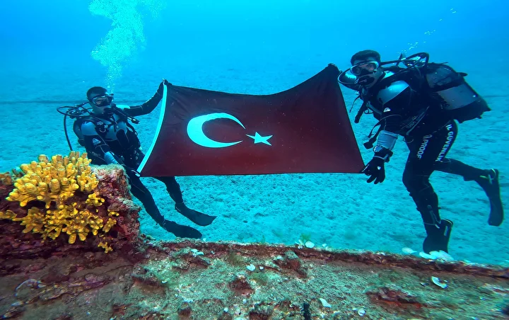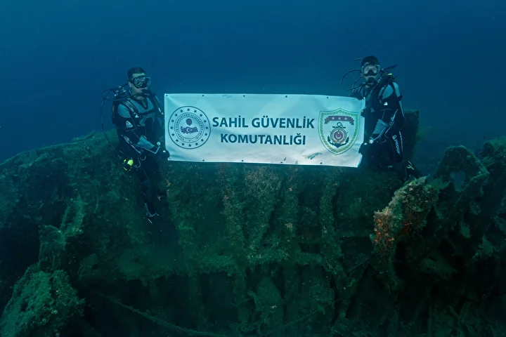 Batıkların görüntülendiği dalışta, Sahil Güvenlik Batı Marmara Grup Komutanlığı ekibi, 30 Ağustos Zafer Bayramı dolayısıyla pankart ve Türk bayrağı açtı.