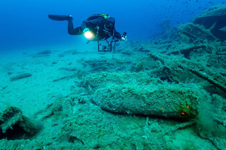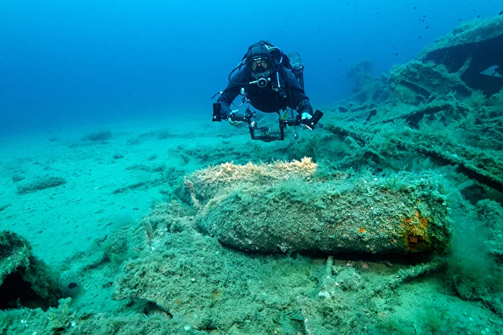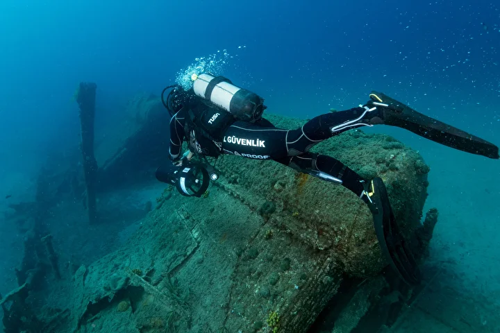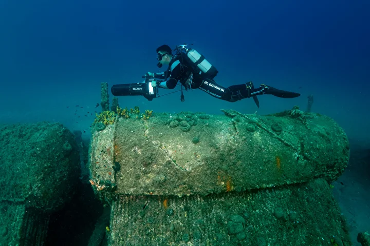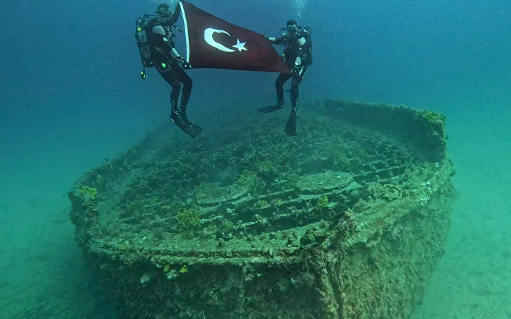 Çanakkale Savaşları'nın denizin derinlerdeki sessiz tanığı batıklar, 30 Ağustos Zafer Bayramı dolayısıyla yapılan anı dalışıyla görüntülendi.