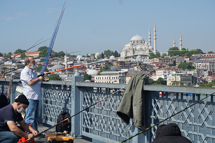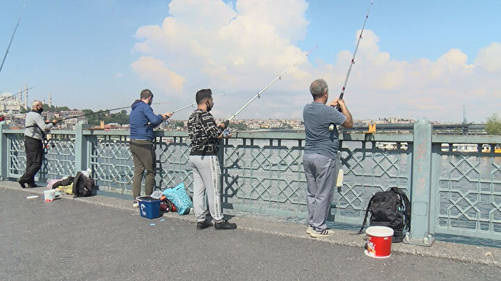 Koronavirüs salgını nedeniyle köprü ve sahillerde olta balıkçılığının yasaklanmasının ardından Galata Köprüsü sessizliğe bürünmüştü. Yasağın sona ermesinin ardından köprü eski günlerine geri döndü. Amatör balıkçılar sabahın ilk ışıklarında oltalarıyla yerini aldı, kovalar balıkla doldu.