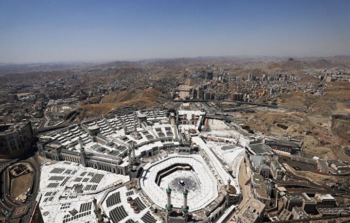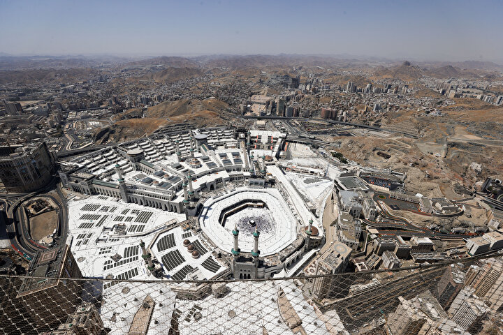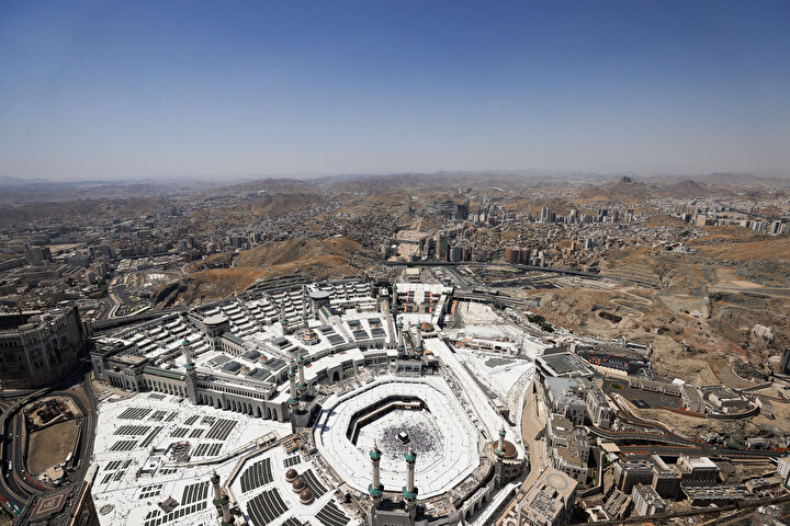 Hacı adaylarının kutsal yolculuğunu takip için Mekke'de bulunan yabancı medya temsilcileri, 601 metre yüksekliğindeki Kraliyet Saat Kulesi'nden Kabe ve çevresini görüntüledi.