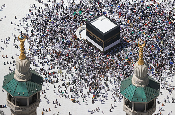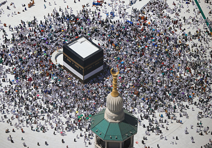 Dünyanın çeşitli ülkelerinden Suudi Arabistan'ın Mekke kentindeki kutsal topraklara gelen Müslümanlar, Hac farizasını yerine getirmek için ibadetlerini sürdürüyor.