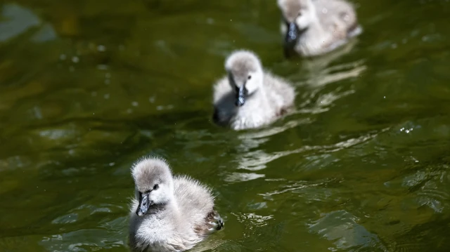 Ankara'nın simge yerlerinden Kuğulu Park'ta dünyaya gelen 5 siyah kuğu yavrusu suyla buluştu.