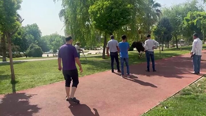Boğa ise bir süre sonra bölgeye gelen Haliliye Belediyesi kurban yakalama ekipleri tarafından iğneyle sakinleştirilerek kesimhaneye götürüldü.