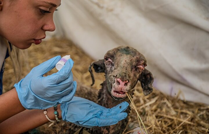 Antalya'nın Manavgat ilçesindeki orman yangınından etkilenen hayvanlar, Türkiye'nin en büyük sahra hastanesinde tedavi altına alındı.