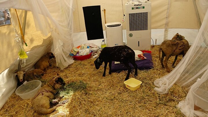 Yangında zarar gören karga, koyun, buzağı, eşek, baykuş, kaplumbağa, tavuk, kedi ve köpekler bu hastanede tedaviye alındı. Gönüllü veteriner hekimler tarafından yapılan tedavilerde hayvanlara birer de isim verildi. Gebe hayvanlar için ultrason cihazı, kan tetkikleri için laboratuvar ve mama deposu, yine alan içerisinde çadırlarda yer alıyor.