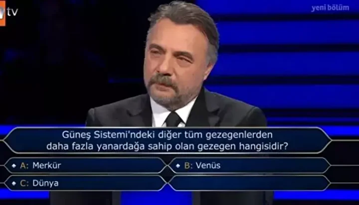 Sakin, yarışmadan çekilmek yerine risk alarak soruyu "D şıkkı Mars" yanıtını vermeyi tercih etti.