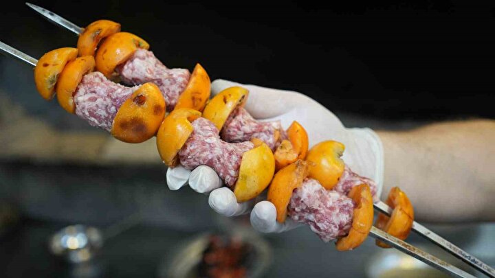 İlkbaharın gelmesiyle mevsim meyvelerinden yapılan kebaplardan olan yenidünya kebabının büyük ilgi gördüğünü belirten kebap ustası Ahmet Çadır, mayhoş tadıyla ilkbahar aylarında sofralarda yer bulan kebabın çok lezzetli olduğunu söyledi.