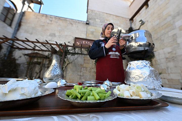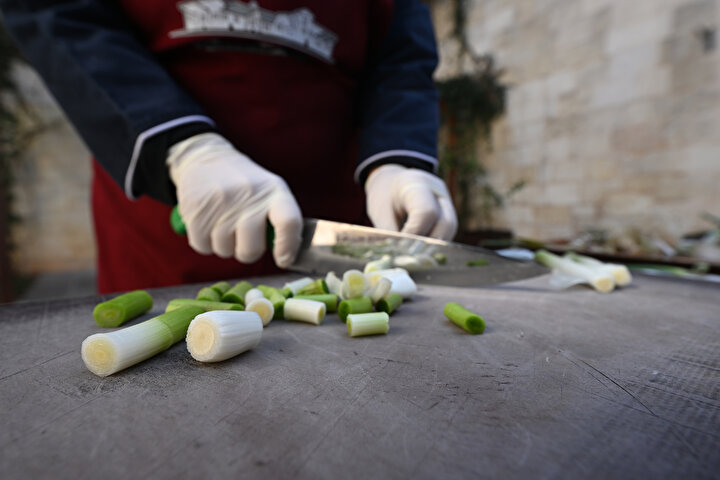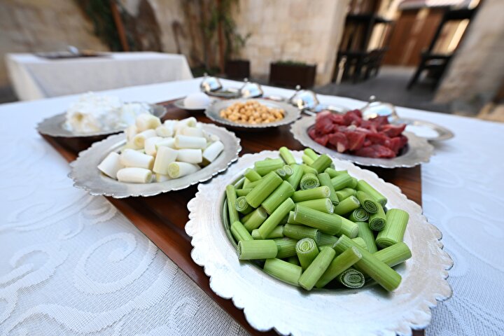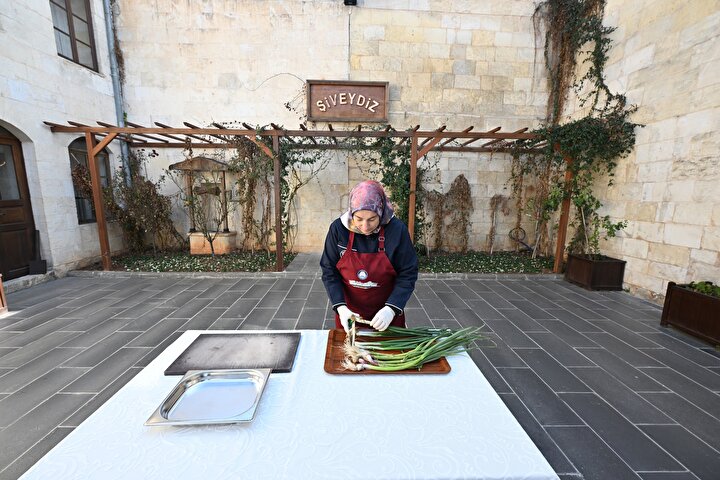 Gaziantep'in az bilinen lezzetlerinden, taze soğan ve sarımsaktan yapılan şiveydiz, tarihi mekanda gelecek nesillere aktarılıyor.