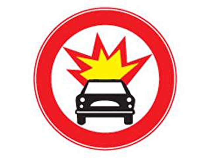 Bu enteresan trafik işareti, parlayıcı madde taşıyan araçlarının girmesinin yasak olduğu yollarda bulunuyor.