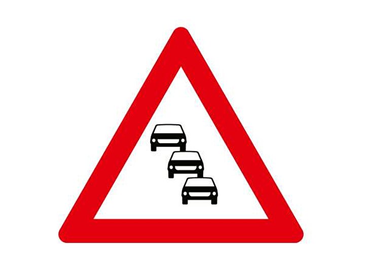 İstanbul gibi trafiğin 24 saat yoğun olmadığı yerlerde, sürücüler yolun ilerisinde trafik olabileceğiyle ilgili uyarılıyor. Trafik sıkışıklığı levhası, hızı düşürmek ve belki alternatif yol arayışına girmek için de bir uyarı.
