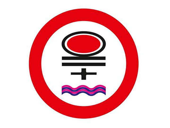Belirli miktardan fazla su kirletici madde taşıyan taşıt giremez trafik işareti, belirli miktardan fazla su kirletici madde taşıyan taşıtların girmesinin yasak olduğu yol girişlerinde kullanılıyor.