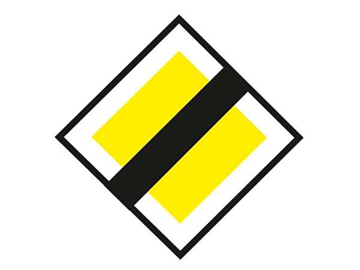 Anayolun sonuna geldiğinizi gösteren anayol sonu levhası diğer tüm trafik işaretlerinden farklı renkte tercih edilmiş.