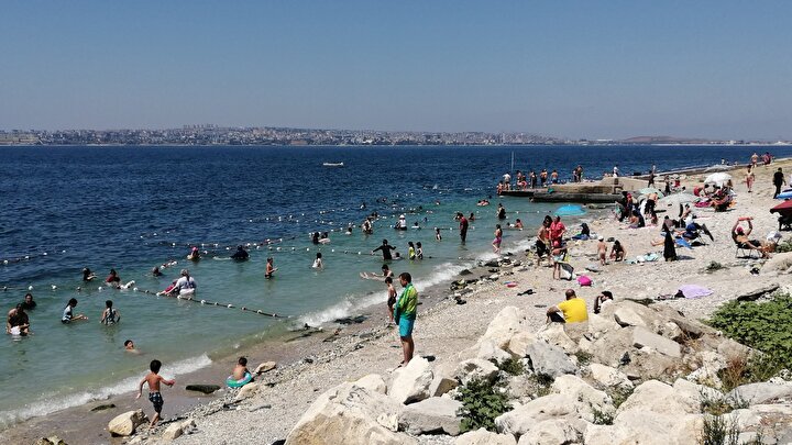Denizde serinlemeye çalışan vatandaşlar, plajda güneşlenip, getirdikleri şemsiyelerin gölgesinde dinlendi. Bazı vatandaşlar ise ağaç gölgelerinde vakit geçirdi.