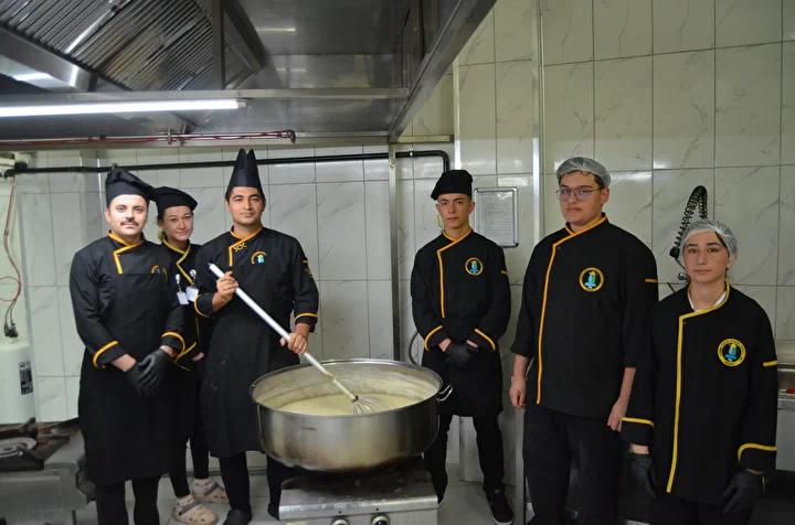 Mezun olduğu okulda çalışan Hüseyin Neşeli, “2012 yılında bu okuldan mezun oldum. 2016 yılında ise burada usta öğretici olarak çalışmaya başladım. Burada yaklaşık 1500 kişiye 4 çeşit yemek çıkartıyoruz” dedi.