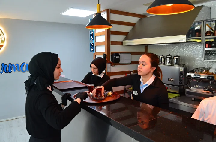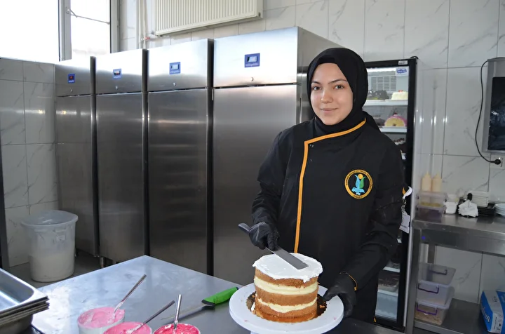 Meliha Duran ise “Okulumdan mezun olduktan 3 ay sonra burada şef olarak çalışmaya başladım. Pastane bölümünde 41 çeşit ürünümüz var. Genç yaşta meslek sahibi olmak ise çok ayrı bir duygu. Çünkü kendi ayaklarımın üstünde durduğumu düşünüyorum. Ailem de benimle gurur duyup destekliyor” diye konuştu.