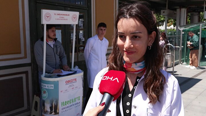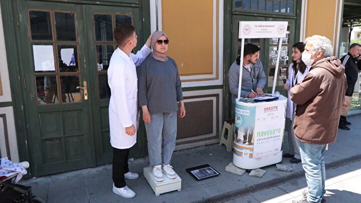 Diyetisyen Emel Özalp Şahin, "Sağlık Bakanımız Kemal Memişoğlu'nun başlattığı 'İdeal Kilonu Öğren Sağlıklı Yaşa' kampanyası kapsamında tüm Türkiye'de, 10 Mayıs-10 Temmuz tarihleri arasında 10 milyon kişinin boy ve kilo ölçümlerinin taranması hedeflenmektedir. Ülkemizde artan obezite prevalansına farkındalık oluşturmak amacıyla bu çalışmayı yürütüyoruz. İnsanlara boy ve kilo ölçümlerini gerçekleştirerek beden kitle indeksleri hakkında bilgi veriyoruz. Riskli grupta gördüğümüz kişilere sağlıklı hayat merkezlerine başvurmaları için bilgi veriyoruz. Bu kartlarda kişilerin boy, kilo ve beden kitle indeksleri yazılarak, buradaki kare kodu telefonlarına okutarak kendilerine uygun olan il ve ilçelerden ulaşabilecekleri sağlıklı hayat merkezleri, toplum sağlığı merkezlerinin adreslerine ulaşabilmektedirler. Oralardan gidip yardım alabilirler, bilgi alabilirler." dedi.