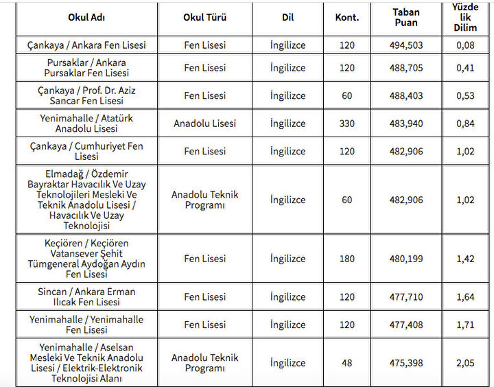 2024 taban puanları ve yüzdelik dilimleri Ankara’da lise okuyacak öğrenciler tarafından merak konusu. Ankara lise taban puanları LGS sınav sonuçları öncesi merakla beklemiyor. Lise tercihi yapacak öğrenciler, Ankara lise taban puanları ve yüzdelik dilimlerini araştırıyor. Peki Ankara liseleri taban puanları ve yüzdelik dilimleri nedir? İşte Anadolu, Fen, İmam Hatip Lisesi taban puanları ve LGS yüzdelik dilim bilgileri...